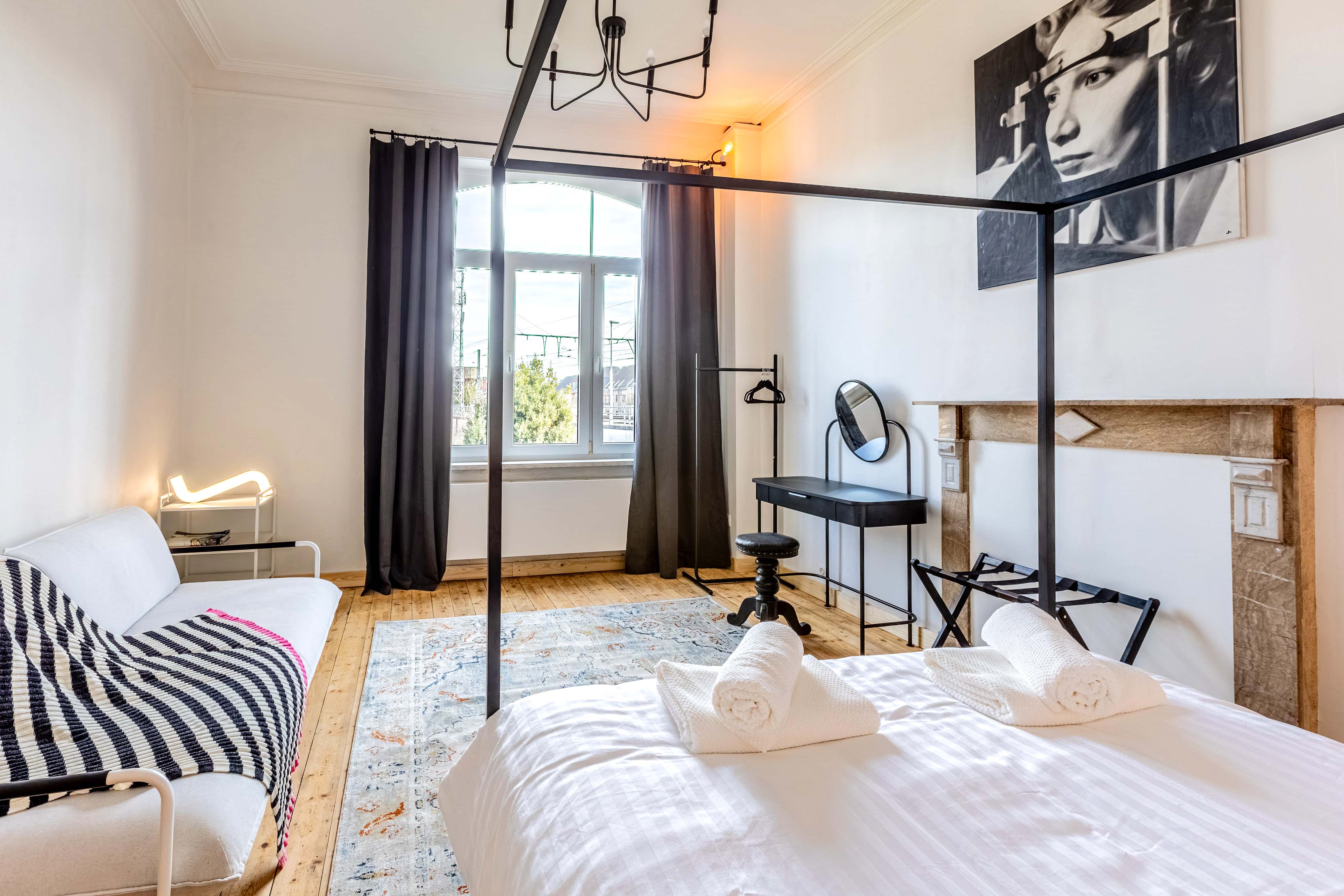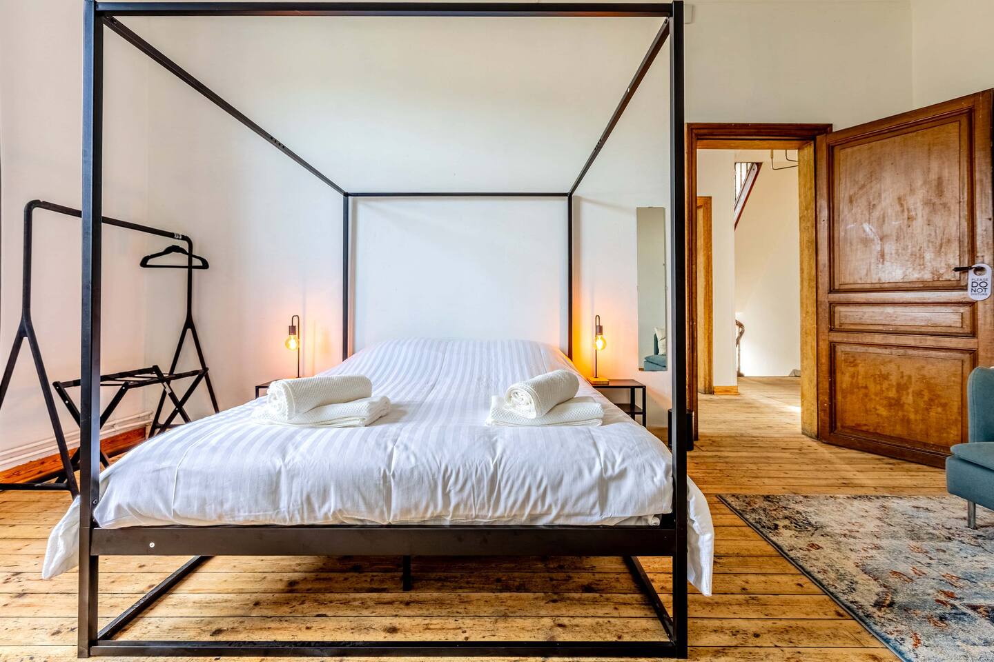 Toegang Het domein is bereikbaar via een poort met een aparte toegangscode, die je na je boeking via Airbnb ontvangt. De voordeur van het kasteel opent via een smart lock met een tweede code. Beide codes worden vooraf met je gedeeld — alles verloopt volledig zelfstandig. Waarborg Er wordt een waarborg van €500 gevraagd via een gastenportaal van ons. Dit wordt automatisch verwerkt en bij een probleemloze uitcheck 3 dagen nadien volledig vrijgegeven. Huisregels Lees zeker onze aanvullende huisregels aandachtig door voor je boekt. Belangrijkste punten: niet roken binnen het pand, geen huisdieren toegestaan en geen feesten of evenementen. In de buurt Kasteel De Varens ligt op wandelafstand van het centrum van Oudenaarde met zijn restaurants en bruine kroegen. De Vlaamse Ardennen liggen voor de deur — ideaal voor wandelaars en fietsers. Wielerfanaten zijn op de juiste plek: de kasseistroken van de Ronde van Vlaanderen lopen vlakbij, en Oudenaarde is de aankomststad van dit iconische wielermonument. Communicatie: Na 19:00 uur worden niet-urgente berichten afgehandeld door een AI-assistent voor snellere reacties. Voor dringende zaken blijft onze noodtelefoonlijn 24/7 bereikbaar.